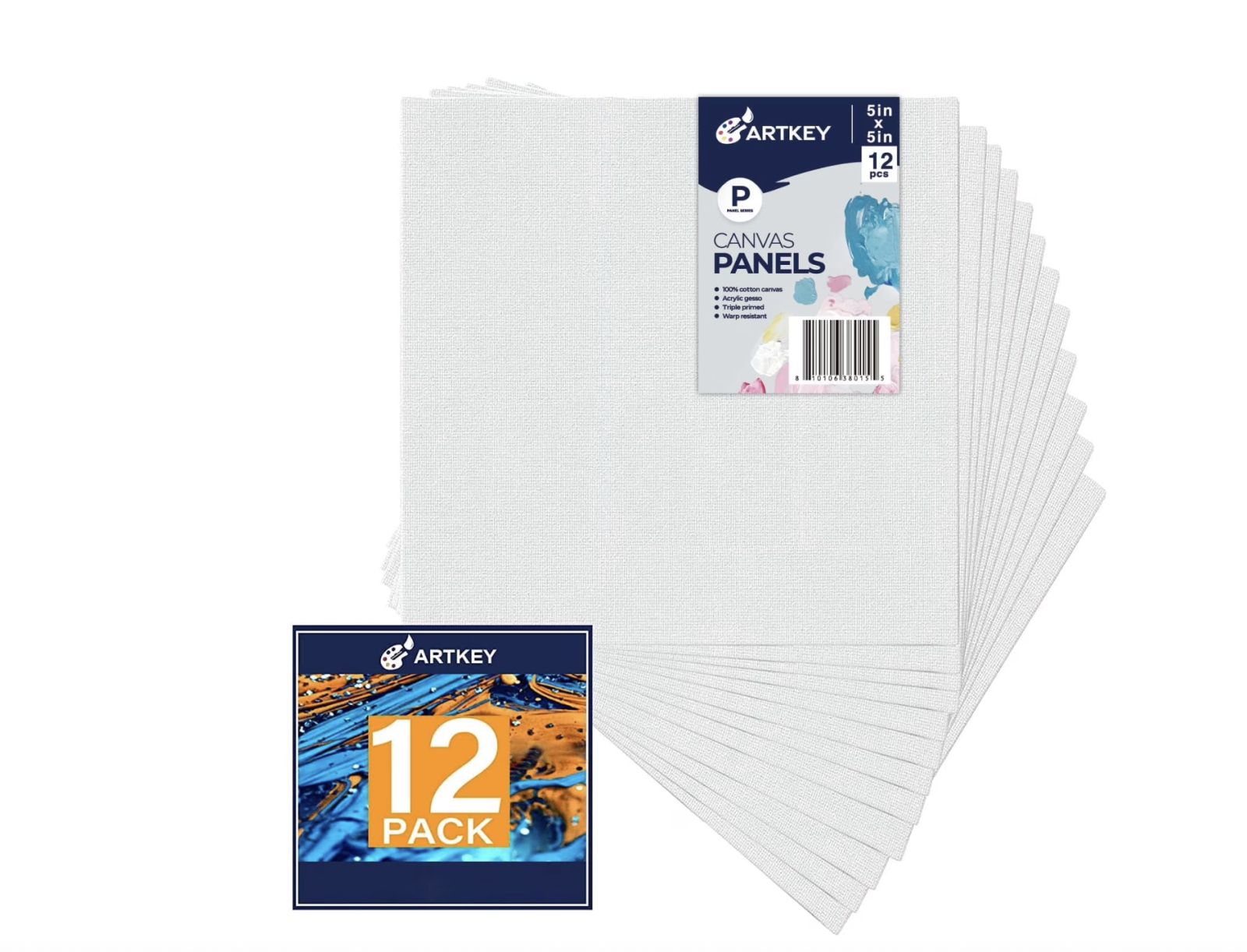 Artkey Canvas Panels 5x5 inch 12-Pack are a simple, affordable way to keep your painting ideas flowing. Each panel features 100% cotton canvas that’s acid-free, giving colors a true, long-lasting look and helping prevent yellowing over time. The panels come on sturdy backing so you can paint right away—no need for framing or stretching. With a pre-primed surface, they’re ready for acrylics, oils, or mixed media, making them a versatile choice for adults exploring new ideas. The compact 5x5 size is perfect for quick studies, mini compositions, or testing colors without committing to a large canvas. This 12-pack is ideal for practice sessions, art classes, or keeping a spare set at home, in the studio, or on the go.