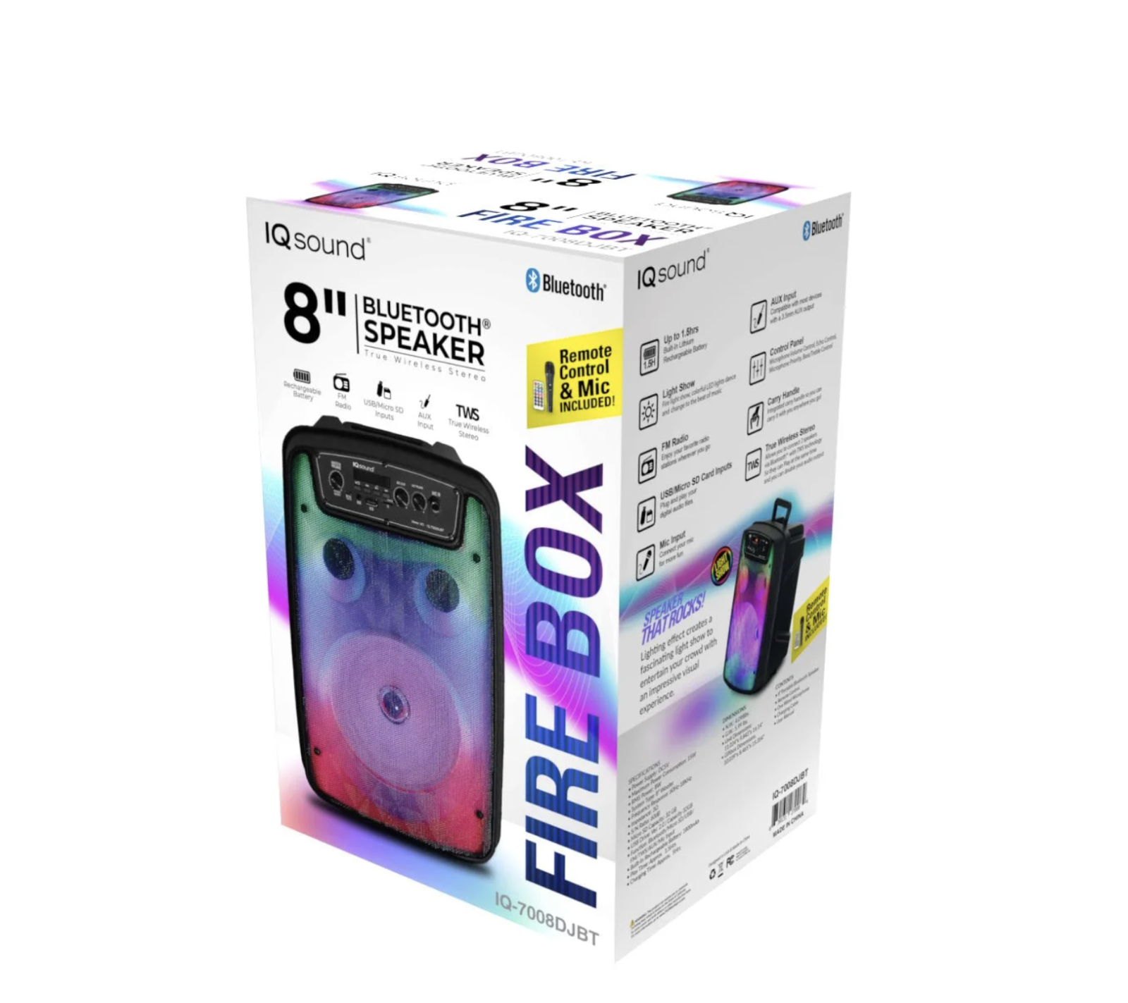 8" Bluetooth Speaker FIRE BOX with TWS and LED Color Lights to Beat (IQ-7008DJBT)