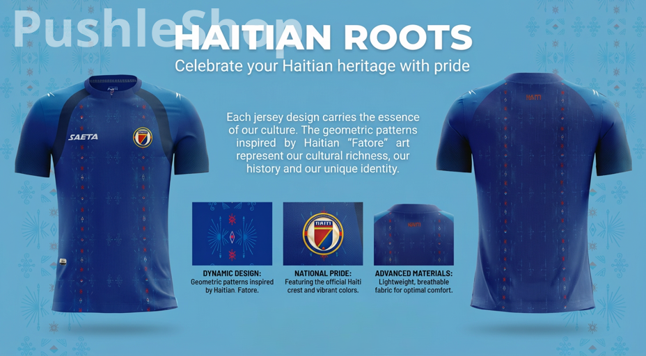 Inspired by the national colors and cultural details of Haiti, this jersey features a modern athletic fit, subtle graphic patterns, and a bold crest that represents strength, unity, and identity. Whether you’re watching the match, training, or wearing it casually, this jersey delivers both comfort and meaning.